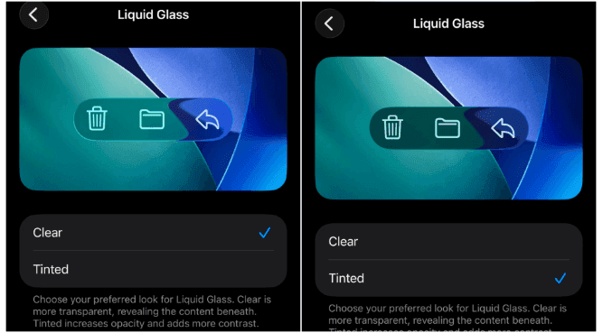 iOS 26 用户现在可以在透明度设置中选择“有色”或“透明”。“透明”选项可保持原版的高透明度。